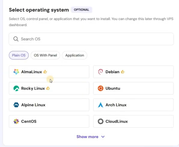 Hostinger VPS prend en charge plusieurs systèmes d’exploitation populaires, notamment :