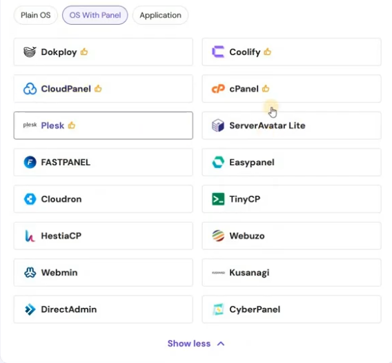 Choisissez un panneau de contrôle pour votre hébergement VPS.